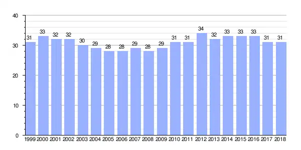 Gráfica de evolución demográfica de Currás entre 1999 y 2018 |