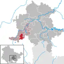 Se encuentra ubicado al sur de la ciudad de Weimar, y a poca distancia al norte de la frontera con el estado de Baviera.