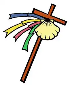 ![]() Logotipo de Cursillos de Cristiandad: bastón de peregrino y cintas de colores | ||