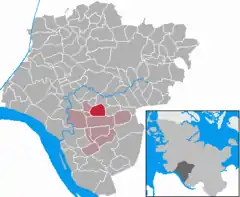 Se encuentra ubicado al oeste del estado, cerca de la desembocadura del río Elba en el mar del Norte y al noroeste de la ciudad de Hamburgo.