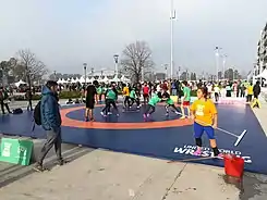 ![]() Evento de lucha olímpica en la Villa Olímpica de la Juventud (Buenos Aires) durante el Día Olímpico del año 2018. | ||