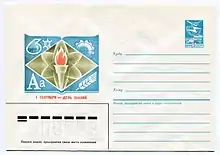 Aunque no se emitieron sellos postales para el Día del Conocimiento en la URSS, se emitieron en varias ocasiones sobres con sellos de arte dedicados a este feriado (KMK). El sello postal para el Día del Conocimiento fue emitido por Lituania en 2015, estrictamente hablando, se dedicó al Día de la Ciencia y el Conocimiento (en lituano: Mokslo ir žinių diena), que se celebra allí el 1 de septiembre.