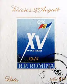 Tras la abdicación forzosa del rey Miguel I, el 30 de diciembre de 1947, la Cámara de Diputados aprobó la ley por la que se proclamó la República Popular de Rumania . [2] El 23 de agosto fue adoptado en ese momento como feriado estatal, denominándolo como día de la insurrección armada antifascista, en referencia a la revuelta armada contra la Alemania nazi y al arresto del gobierno encabezado por Ion Antonescu en 1944 .