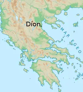 Díon o Dío (en griego antiguo, Δῖον)[1] fue una antigua ciudad de Piería, uno de los centros religiosos antiguos (santuarios) más importantes del Reino de Macedonia. La localidad moderna fue llamada Malatria hasta 1961, año en el que fue renombrada oficialmente como Díon.[2] Esta ciudad está ubicada en la actual unidad periférica de Piería, en Macedonia Central, a 15 km al suroeste de Katerini, a 85,9 km al suroeste de Tesalónica, a 65 km al norte de Lárisa y a 425 km al norte de Atenas.