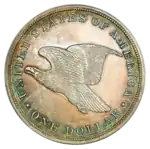 — | Plano | Libertad sentada. Texto «c. gobrecht f.» en la base | Águila volando en campo llano |