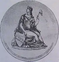 Patterson propuso en una carta fechada el 1 de agosto de 1835 que Sully creara una figura de la Libertad sentada para el anverso, sugiriendo que «la figura estuviera en una postura sentada, por ejemplo, sobre una roca».[8]También sugirió que la figura debería sostener en su mano derecha un píleo encima de un poste para ser un «emblema de la libertad».[8] El historiador numismático Don Taxay señaló la similitud entre el concepto de la Libertad sentada de Patterson y los diseños que ya se utilizaban en las monedas de cobre británicas: «Libertad surgió como una Britania renovada, su tridente fue reemplazado por un bastón y un píleo».[7] En la misma carta, Patterson también le informó a Sully de su visión del reverso, que Peale llevó a cabo: «Propongo un águila volando, y elevándose en vuelo en medio de una constelación, irregularmente dispersa, de 24 estrellas que representa el número de los estados que entonces conformaban la Unión, y llevando en sus garras un pergamino con las palabras e pluribus unum».[6]