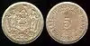 5 Centavos | 1903-1941 | Cu+Ni | 28,10 | 7,30 | Escudo de armas | 5 CENTS - STATE OF NORTH BORNEO - año de acuñación |