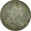 La acuñación del primer dólar de plata de Estados Unidos, conocido como el dólar del cabello suelto, comenzó en 1794 a raíz de la construcción y de la dotación de personal de la Casa de Moneda de Filadelfia. La Ley de la Moneda de 1792 exigía que las monedas de plata tuvieran una aleación del 89,2% de plata y 10,8% de cobre.[1] Sin embargo, los funcionarios de la ceca eran reacios a acuñar monedas con una pureza difícil de producir, por lo que se decidió emitirlas con una aleación no autorizada del 90% de plata.[2] Esto causó que los depositantes de plata en la Casa de Moneda perdieran dinero cuando su metal era acuñado.[2] Durante el segundo año de producción del dólar del cabello suelto, se decidió que sería rediseñado.[3] Se ignora quién motivó o sugirió este cambio, aunque el historiador de numismático R. W. Julian especula que Henry William de Saussure, nombrado director de la Casa de Moneda el 9 de julio de 1795, pudo haberlo sugerido, ya que había declarado que el rediseño de la moneda estadounidense era uno de sus objetivos antes de asumir el cargo.[4] También es posible que el diseño del dólar de cabello suelto se haya suspendido debido a la fuerte desaprobación de la opinión pública.[3]