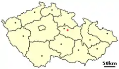 Se encuentra ubicada al noreste de la región, en la zona sur de los Sudetes centrales, cerca del río Orlice —un afluente izquierdo del curso alto del río Elba—, y de la frontera con Polonia y las regiones de Hradec Králové y Olomouc.[1]
