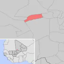 Se encuentra ubicada al norte del país y al oeste de la región de Tombuctú, en la zona de la sabana inundada del delta interior del Níger-Bani, junto a la frontera con Mauritania.