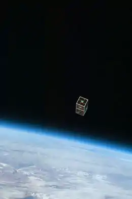 ![]() DRAGONSat fotografiado tras ser lanzado desde la bodega de carga del Transbordador Espacial Endeavour | ||