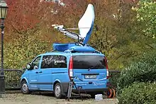 El equipamiento habitual para el trabajo de ENG se complementa con un sistema integrado a un vehículo móvil que recibe una señal de vídeo y audio de una unidad móvil o de una cámara para enviarla a un satélite.