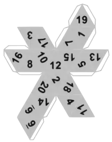 - En un dado de veinte caras, la suma de las caras opuestas suele ser igual a 21.