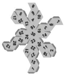 - En un dado de treinta caras, la suma de las caras opuestas suele ser igual a 31.