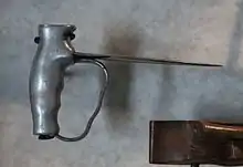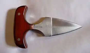 Una daga de puño es una daga de hoja corta con un mango en "T" diseñado para agarrarse con la mano de modo que la hoja sobresalga de la parte delantera del puño, normalmente entre el índice y el dedo medio.[1][2] Se origina como un arma cuerpo a cuerpo para civiles a principios del siglo XIX, y también se ha utilizado en la guerra de trincheras de la Primera Guerra Mundial.[3]