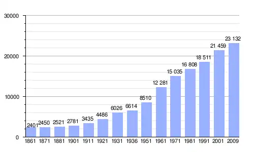 Gráfica de evolución demográfica de Dalmine entre 1861 y 2009 |