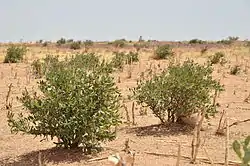![]() Arbustos de la especie Boscia senegalensis en un campo de mijo de la comuna.
