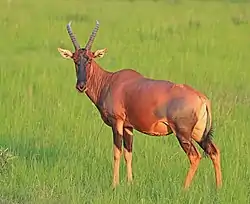 El topi (Damaliscus lunatus jimela)[1] es una subespecie de antílope rápido y muy social del tsessebe común,[2] una especie que pertenece al género Damaliscus. Habitan en las sabanas, semi-desiertos, y planicies inundables de África al sur del Sahara.