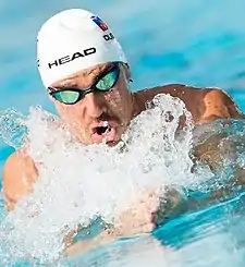 Damir Dugonjič (Ravne na Koroškem, Yugoslavia, 21 de febrero de 1988) es un deportista esloveno que compitió en natación, especialista en el estilo braza.[1]