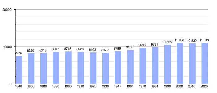 Gráfica de evolución demográfica de Damme entre 1846 y 2020 |