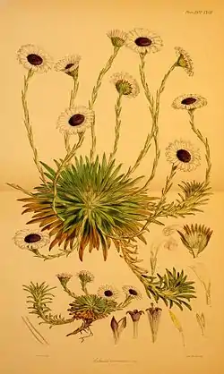 Damnamenia es un género monotípico de plantas herbáceas, perteneciente a la familia Asteraceae.[1] Su única especie Damnamenia vernicosa, es originaria de Nueva Zelanda.