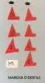 Cuando el segundo y tercer momo dejan sus estandartes, se colocan, partiendo de la posición de marcha, formando una hilera que empieza en el segundo pecado y termina con el séptimo, mientras que el primero, de la mano de la Moma se coloca enfrente de ellos. En esta situación se realizan los saludos entre momos y Moma. Esta sería la primera figura.[1]