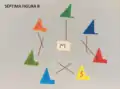 Dan lugar de esta forma a la séptima figura. Con la primera parte de la melodía los momos dan dos vueltas, una hacia derecha y otra hacia izquierda, seguidas de dos golpes de palo (figura A), se repite la primera parte de la melodía que vuelve a consistir en dos vueltas seguidas de dos golpes de palo, pero siguiendo la figura B.[1]