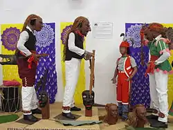 niño David, el cual está ataviado con camisa azul, pantaloncillo rojo, adornado con cinta blanca, chaleco con plumas, zapatos negros cascabeles en ambos lados del tobillo, y en la mano una lanza de madera.[14]