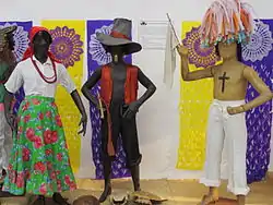 Aunque no posee un vestuario específico, existen algunas variantes de faldas con aberturas a los lados y una blusa de escote cuadrado. Otra versión es un traje completo confeccionado en manta cruda y con dibujos de pirámides, mazorcas de maíz o de cacao y granos de las mismas.[19]
