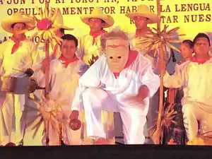 "Cojóes" (danzantes o jugadores): Son hombres disfrazados de modo extraño. Las prendas principales son: Una máscara de madera con facciones regulares o grotescas a la que se le ponen bigotes, barbas y cejas de cerda, una túnica formada por un costal u otro saco construido con fibras y polainas, "sojol" o sea fragmentos secos de tallo de plátano. Las hojas secas de plátano son colocados de las rodillas a los pies; hojas verdes de castaña rodean a su cintura: sacos de hene-quén les cubren el tórax. Las máscaras o caretas multicolores vuelven anónimos sus rostros. Mantas y pañuelos, sombreros tejidos, adornados con flores y hojas de cañitas describen a los "Cojoes" en un ritual ancestral, en donde la acentuada distorsión de sus voces emite sonidos guturales que dan tono de fiesta envuelta de colores y misticismo.[17]