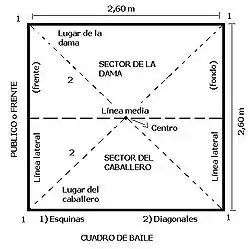 Las danzas se bailan en un cuadrado imaginario de 2,60 metros de lado como mínimo.