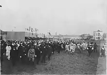 - Foto de 1922 que muestra al sultán en el Mecúar Interior, regresando de las oraciones en la Gran Mezquita de Fes el-Jdid, que estaba conectada directamente con el palacio