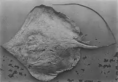 - Esta obra contiene una traducción derivada de «Dasyatis acutirostra» de Wikipedia en catalán, publicada por sus editores bajo la Licencia de documentación libre de GNU y la Licencia Creative Commons Atribución-CompartirIgual 3.0 Unported.