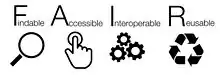 Los datos FAIR son datos que cumplen con los principios de encontrabilidad, accesibilidad, interoperabilidad y reutilización. El acrónimo y los principios fueron definidos en un artículo publicado en marzo de 2016 en la revista Scientific Data por personas científicas y organizaciones. [1]