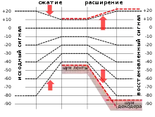 Cuando la señal se vuelve a expandir, el silbido de la cinta se expande junto con ella, haciéndola más fuerte también. Sin embargo, la relación entre la señal y el ruido permanece prácticamente constante durante este proceso, por lo que la salida resultante conserva esta relación más alta entre la señal y el ruido. En última instancia, significa que si bien el silbido de la cinta se vuelve más fuerte durante las partes "suaves" de la grabación, la grabación en sí es (normalmente) siempre mayor en volumen y hace que el silbido sea mucho menos perceptible.[4]