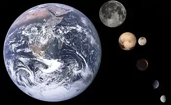 Plutón y su mayor satélite, Caronte, son característicos porque su baricentro (el punto alrededor del que ambos giran) está situado fuera del volumen de ambos cuerpos. Esto significa que, en lugar de que Caronte esté girando alrededor de Plutón, ambos están orbitando alrededor del centro de masas. Por tanto, es común entre los astrónomos referirse a Plutón/Caronte como un planeta doble: dos objetos que orbitan alrededor del Sol en tándem.