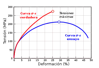 Tensión y deformación en ingeniería son aproximaciones al estado interno de un objeto que pueden determinarse a partir de las fuerzas externas a las que se somete y a las modificaciones de forma que experimenta, siempre que no haya un cambio significativo en su tamaño. Cuando hay un cambio significativo en el tamaño (como por ejemplo, cuando un material dúctil pierde sección a medida que se alarga hasta convertirse en un hilo), la tensión verdadera y la deformación verdadera pueden deducirse de las dimensiones del objeto (particularmente de su sección, puesto que la tensión es el cociente de la fuerza aplicada y de la sección sobre la que se aplica) en un instante dado.[1]