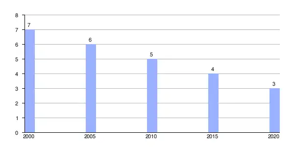 Gráfica de evolución demográfica de Delle entre 2000 y 2020 |