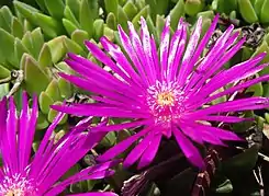 Delosperma: nombre genérico que deriva de las palabras griegas: delos = "abierto" y sperma = "semilla" donde hace referencia al hecho de que las semillas son visibles en las cápsulas abiertas.