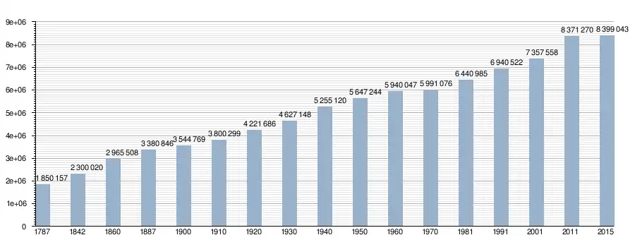 La evolución de la población desde finales del siglo XVIII se observa en el siguiente gráfico de barras:
