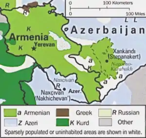 Poco poblada, Armenia es sostenida en parte por una muy importante diáspora armenia alrededor del mundo: el Rusia (1,5 millones), en Canadá y EE. UU., (1,2 millones), Argentina, (120.000), en África (16.000), en Siria y Líbano (250.000), en la UE (700.000), principalmente en Francia, y en América Latina (70.000).
