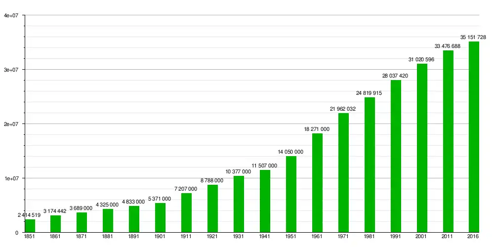 Gráfica de evolución demográfica de Canadá entre 1851 y |