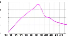 1 Desde el 2000, los datos poblacionales provienen de los Censos y algunos otros registros.[9]