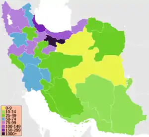 West Azerbaijan | 2,873,459 | 3,080,576 | 1.40 |