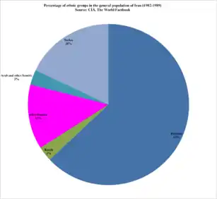 Según el CIA World Factbook,[7] la mayor parte de la población, en un 51% (60% según la Biblioteca del Congreso), es persa. Luego hay pueblos pertenecientes a diferentes grupos étnicos: