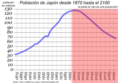 Cambios en la población de Japón desde el 1870 proyectados hasta el 2100.