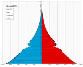 Según el Banco Mundial la población de Liberia era de 4.937.374 para el año 2019, más de cuatro veces en comparación a 1960 (1.118.655 habitantes).
