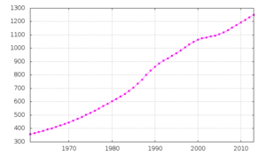 Tasa de crecimiento poblacional: 0,83% (2003 est.), 2,02% (2000 est.)