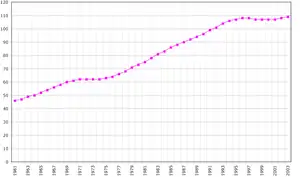 - Tasa de mortalidad infantil (1995-2001): 20 por 1000.