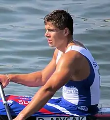 Denis Myšák (Bojnice, 30 de noviembre de 1995) es un deportista eslovaco que compite en piragüismo en la modalidad de aguas tranquilas.[1]